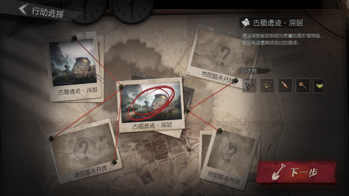 3、以摸金撤离为例,选择遗迹的浅层或深层;
